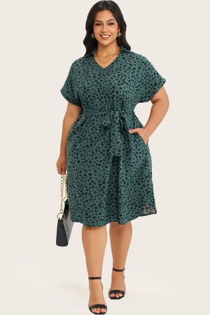Vestido midi con cinturón y manga dolman a lunares verde35,99 €