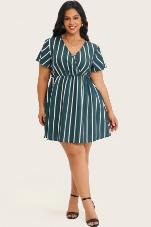 Vestido midi con sobrepelliz de rayas y cuello en V profundo en verde27,99 €