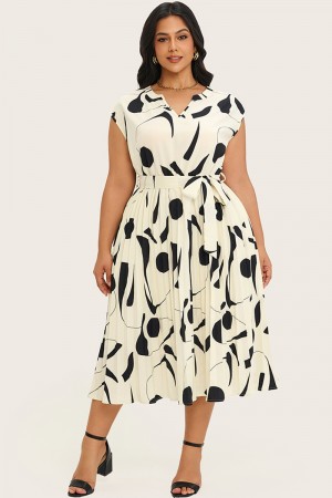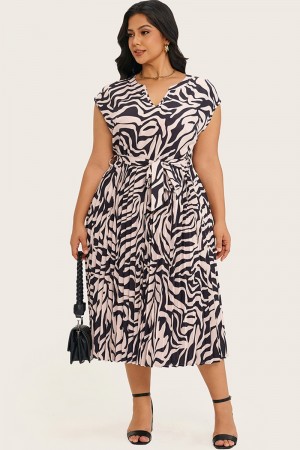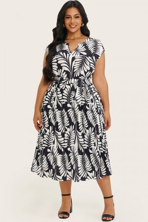 REBAJAVestido Midi de Talla Grande con A-línea Negra y Blanca a Rayas