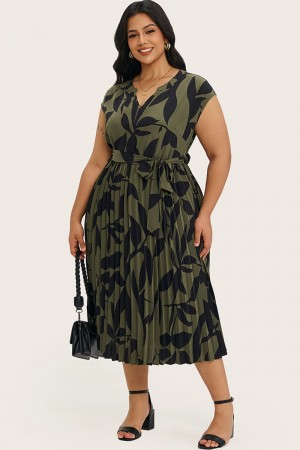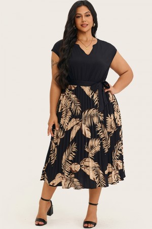 Vestido midi con cinturón y muescas con estampado de hojas de patchwork44,99 €