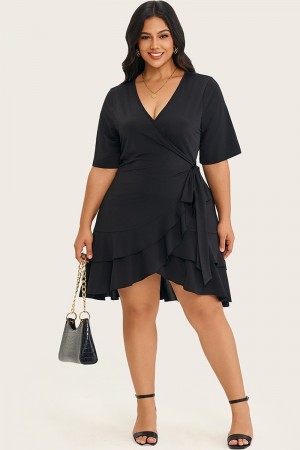 Vestido cruzado con cordones y volantes con cuello en V negro37,99 €