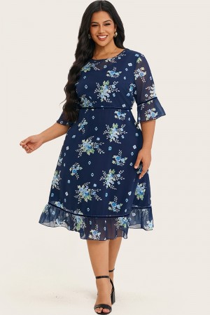 Vestido midi azul con cuello redondo y bordado de flores silvestres44,99 €