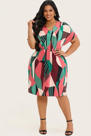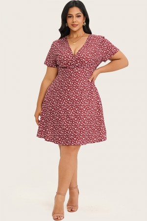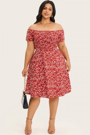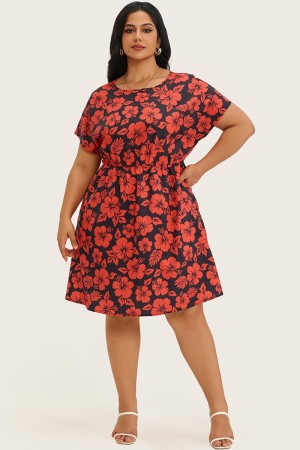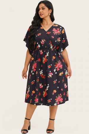 REBAJAVestido midi con manga de murciélago y estampado floral rojo