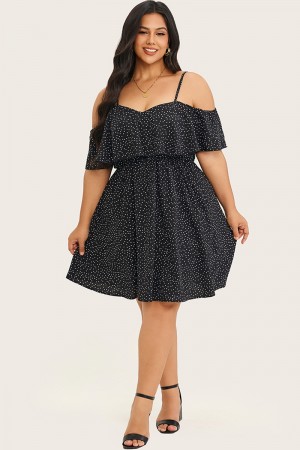Vestido con ribete de volantes y hombros descubiertos de lunares32,99 €