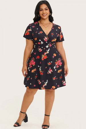 Vestido midi con estampado floral y corte en A de manga corta negro33,99 €