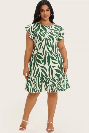 REBAJAVestido Midi V-cuello de Manga Volante con Leopardo Estampado
