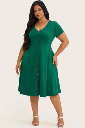 Vestido Medio Negro de Talla Grande Bolsillos con Manga Corta30,99 €