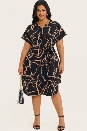Vestido midi con cinturón y estampado gráfico con cuello con muesca27,99 €