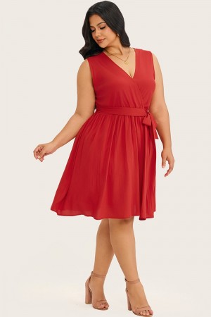 Vestido midi sin mangas plisado cruzado con cuello en V rojo40,99 €