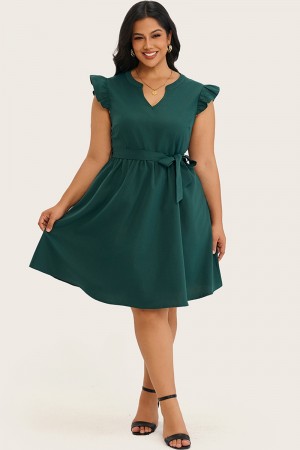Vestido midi con cinturón y dobladillo con volantes y cuello con muesca30,46 €