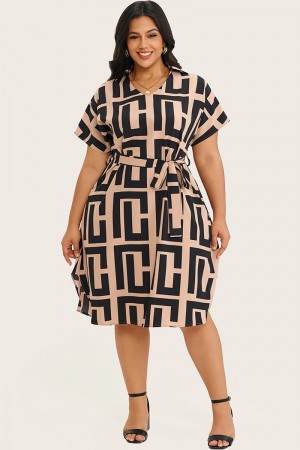 Vestido midi de talla grande con cinturón y manga dolman con estampado aleatorio35,99 €