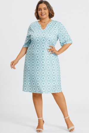 REBAJAVestido Midi de Talla Grande V-cuello con Floral Estampado