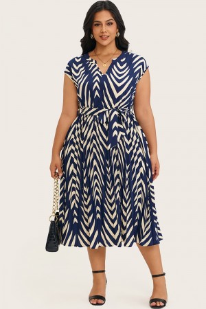 Vestido midi azul marino con cinturón y manga dolman con estampado geométrico35,99 €