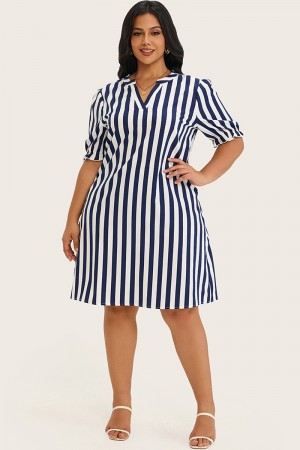 REBAJAVestido Midi de Talla Grande con A-línea Negra y Blanca a Rayas